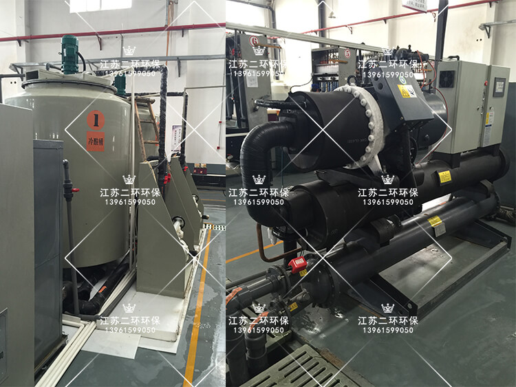 利用風冷式冷凍機或螺桿水冷機冷凍制冷,冷凍機自身帶有高效熱交換器,冷凍壓縮機制冷傳導給冷凍劑R22(乙二醇),溫度保持在-10攝氏度以上,形成冷凍水,存儲在冷凍水箱中。冷凍水與常溫稀硫酸,通過耐腐石墨管熱交換器進行熱量交換,石墨管內(nèi)壁走流動的稀硫酸,石墨管外壁走流動的冷凍水。兩種液體存在較大的溫差梯度,常溫稀硫酸的熱量快速被石墨管外壁的低溫冷凍水帶走,從而使得稀硫酸能夠快速的被冷卻。整個過程在密閉的容器中進行,沒有酸霧飄逸,安全可靠。